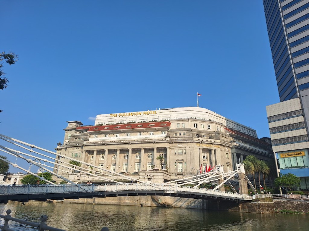 After leaving VivoCity, I boarded the MRT on the HarbourFront Northeast (Purple) Line to Outram Park. From there, I transferred to the East-West (Green) Line and got off at Raffles Place Station. I walked toward the Fullerton Hotel and made my way to Merlion Park. Despite the intense heat, the park was buzzing with visitors snapping photos with the iconic Merlion—one of Singapore’s most recognized landmarks.