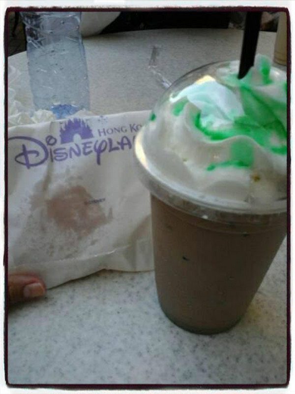 After the Flights of Fantasy parade, which lasted an hour, we were hungry and decided to grab something to eat. We went to this coffee shop, bought some mint chocolate and an egg tart, and continued our way to Tomorrowland for a ride.