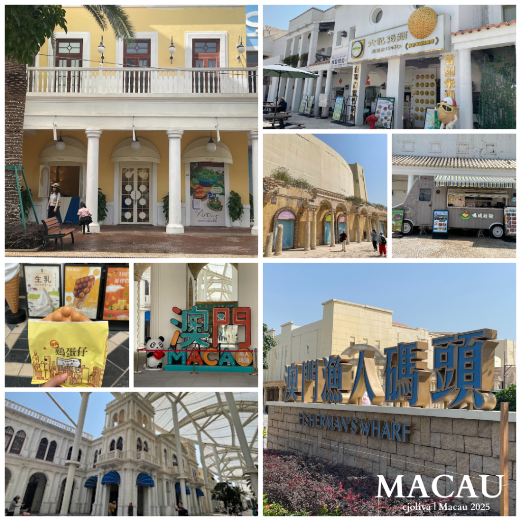 As the bus pulled away, I couldn’t help but admire the cityscape unfolding before me—grand structures like Sands Macau and the elegant Harbourview Hotel came into view, standing tall against the bustling streets. Upon arriving, I made my way toward Fisherman’s Wharf, where its unique architecture instantly caught my eye.