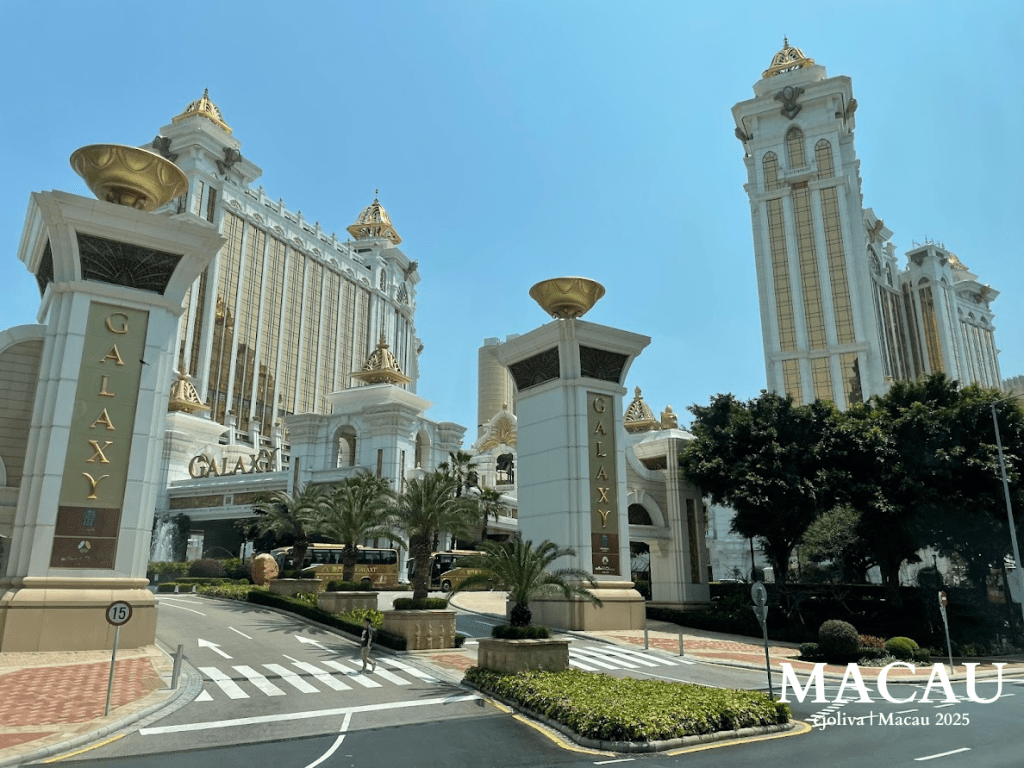 On the bus on my way to the Parisian, another architectural marvel demanded my attention—the sprawling Galaxy Macau. From afar, its shimmering gold-tinted façade sparkled under the sun, almost like a mirage in the middle of the city. It’s a constellation of luxury under a single roof.