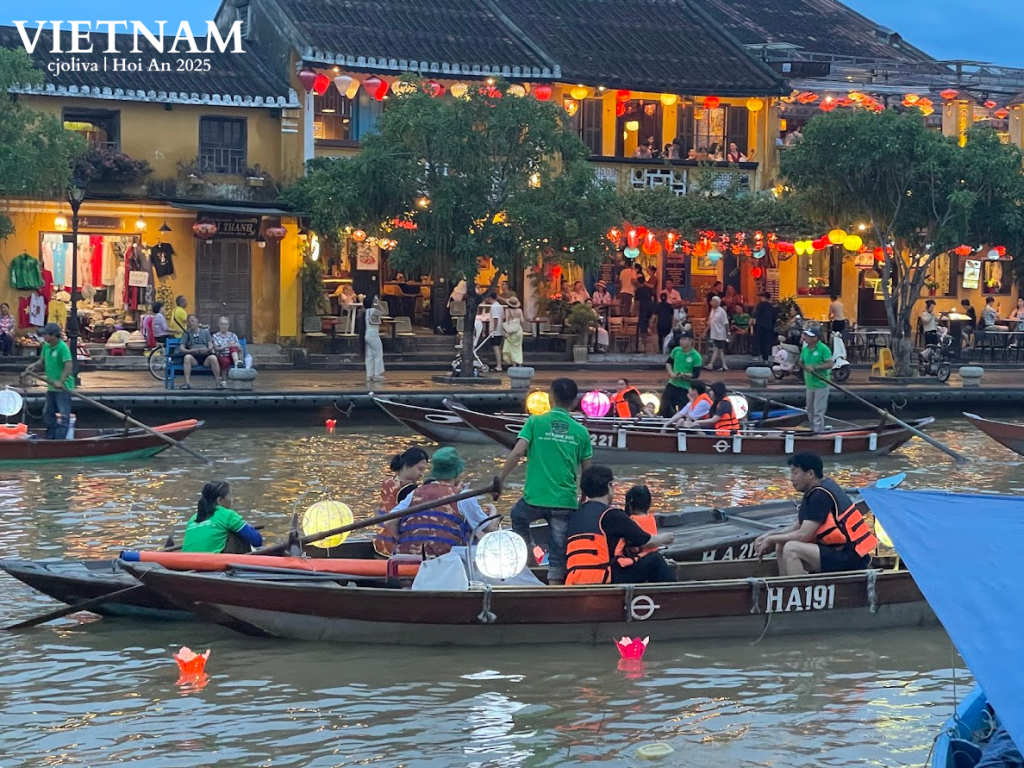 Boats glided across the river, gently rocking under the soft light of lanterns. Laughter echoed from both tourists and boatmen, while small floating lanterns were released into the water, carrying wishes I could only imagine.