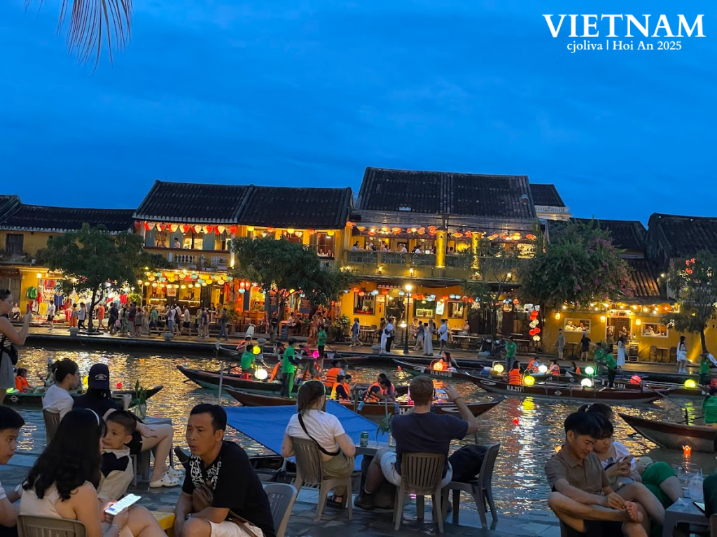 The riverside was alive—colorful stalls offering street food, vendors calling out their menus, and the smell of grilled seafood and sweet treats wafting through the air. Restaurants buzzed with diners, locals and tourists alike, and for the first time since I arrived, Hoi An truly felt like the vibrant lantern town I had dreamed of.
