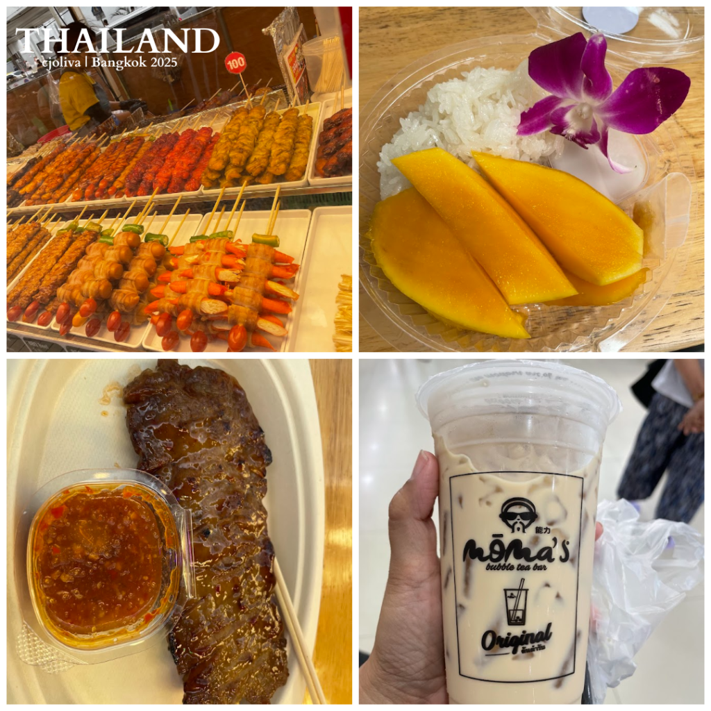 I took the BTS Skytrain from Siam to Ratchathewi Station and walked toward Platinum Mall. I wasn’t planning to shop—just eat. I started with Thai-style grilled barbecue (perfectly charred, on a stick), then followed it up with another round of mango sticky rice. I mean… once is never enough. 😄